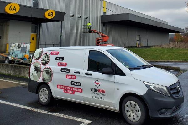 DRONNE INNOV Nettoyage Service a été missionné pour nettoyer et traiter 5000 m² de bardage, 14500 m² de toiture industrielle, 54 puiots de lumière et 12 ensemble de skydomes en polycarbonate.