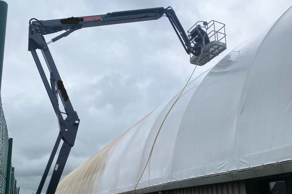 Drone Innov Nettoyage Service a réalisé le nettoyage d'un dôme de protection de terrain de Tennis.