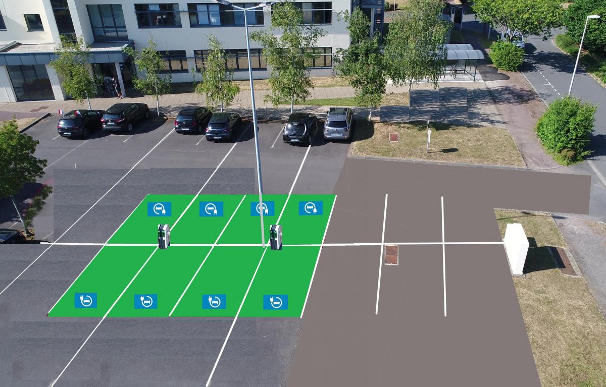 Notre client ACELEC 14 effectue la fourniture, la mise en place et la maintenance de bornes de rechargement pour véhicules électriques. Dans ce cadre, et afin de proposer un projet présentant une implantation précise à son client, ACELEC 14 a fait appel à Drone Innov.